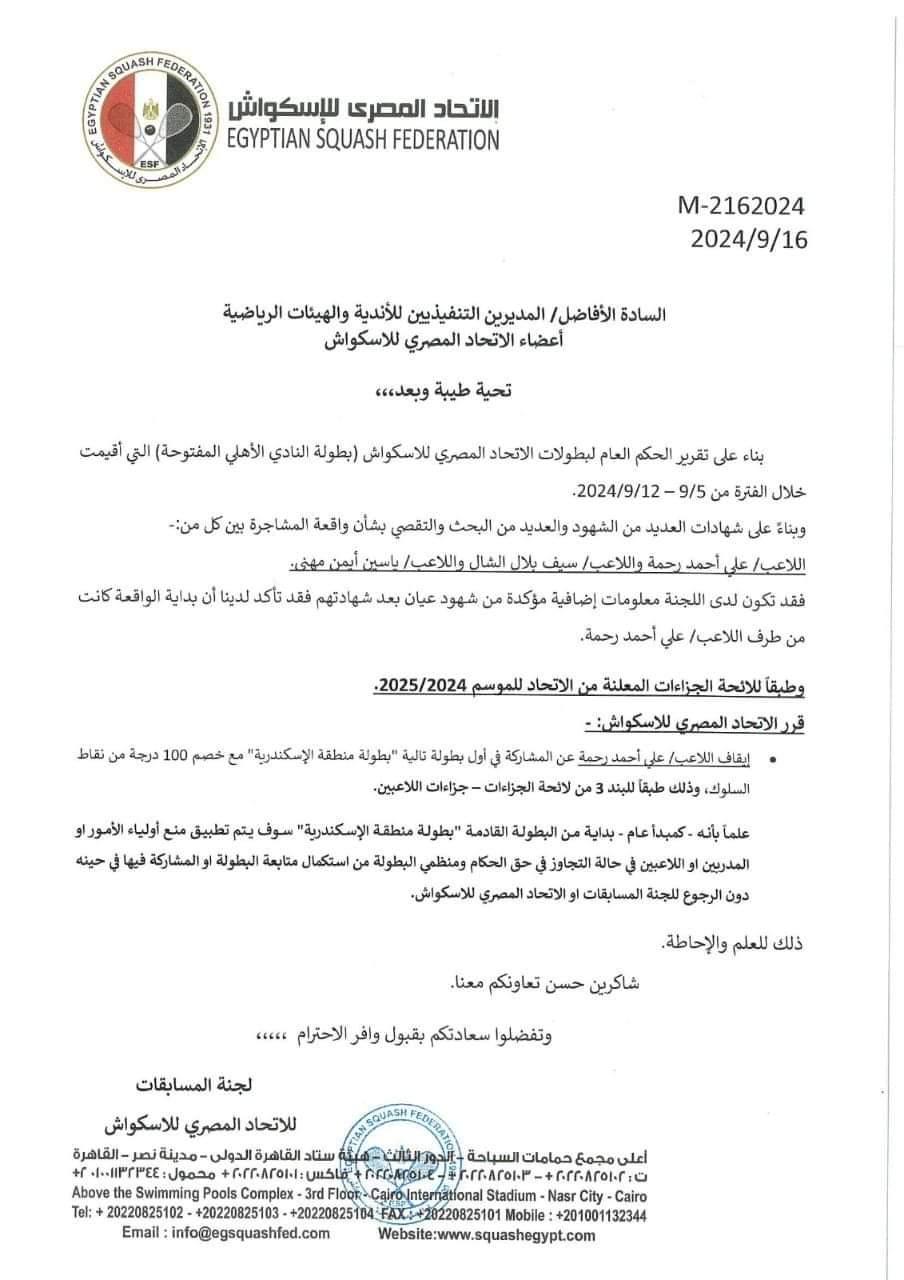 وزير الشباب والرياضة ورئيس الرقابة المالية ورئيس...