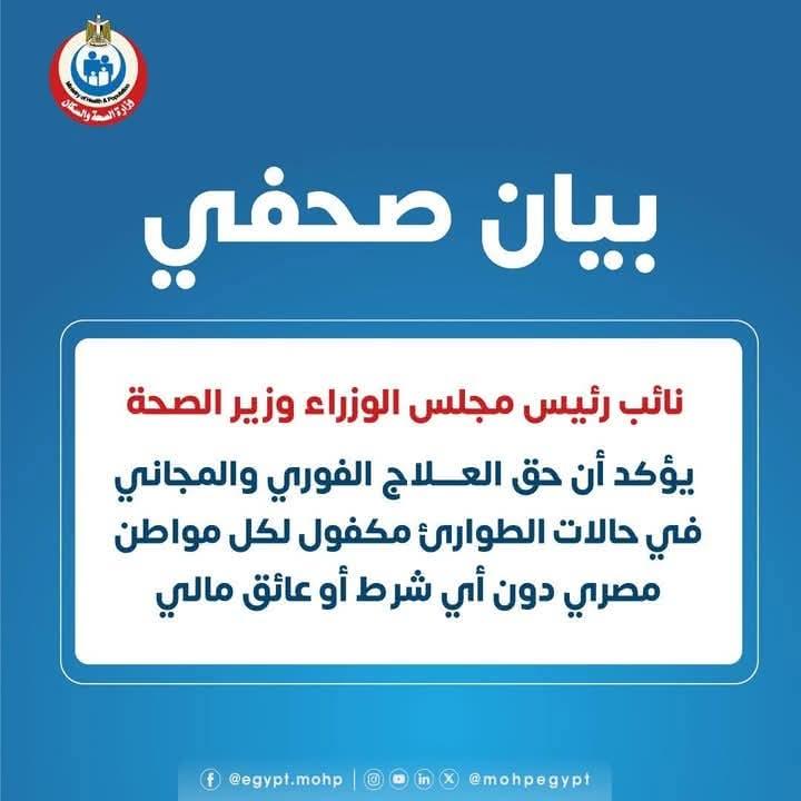 بيان رسمي من وزارة الصحة والسكان حول حادث انقلاب...