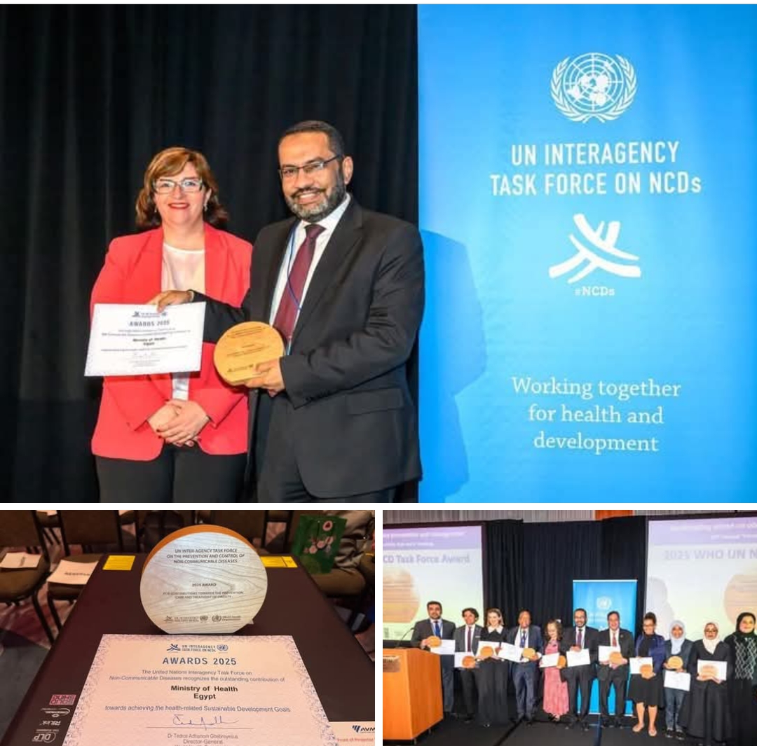 أعلنت منظمة الصحة العالمية (WHO) وفريق العمل المشترك بين وكالات الأمم المتحدة للوقاية من الأمراض غير السارية ومكافحتها (UNIATF)، عن فوز جمهورية مصر العربية بجائزة دولية مرموقة ضمن جوائز عام 2025، تقديرًا لجهودها المبتكرة والفعالة في الوقاية من السمنة ومكافحتها.