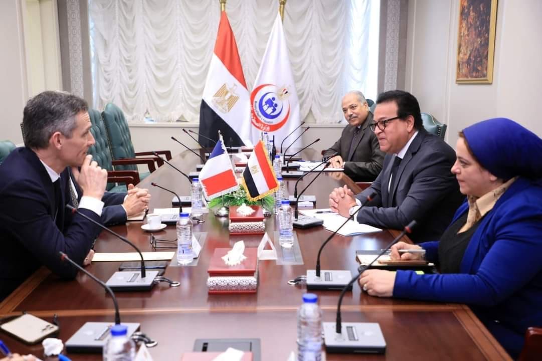 ولفت "عبدالغفار" إلى إن الوزير ناقش مع مستشار الرئيس الفرنسي سبل التعاون فيما يتعلق بمستشفيات هرمل لعلاج الأورام ومستشفى الحروق بالقناطر الخيرية و مستشفى ٥٠٠ ٥٠٠ لعلاج أورام الأطفال ومستشفى الهلال الأحمر المتخصص في علاج العظام في إطار خطة تعاون طويلة الأمد لتحسين الخدمات الطبية والصحية للمواطنين.