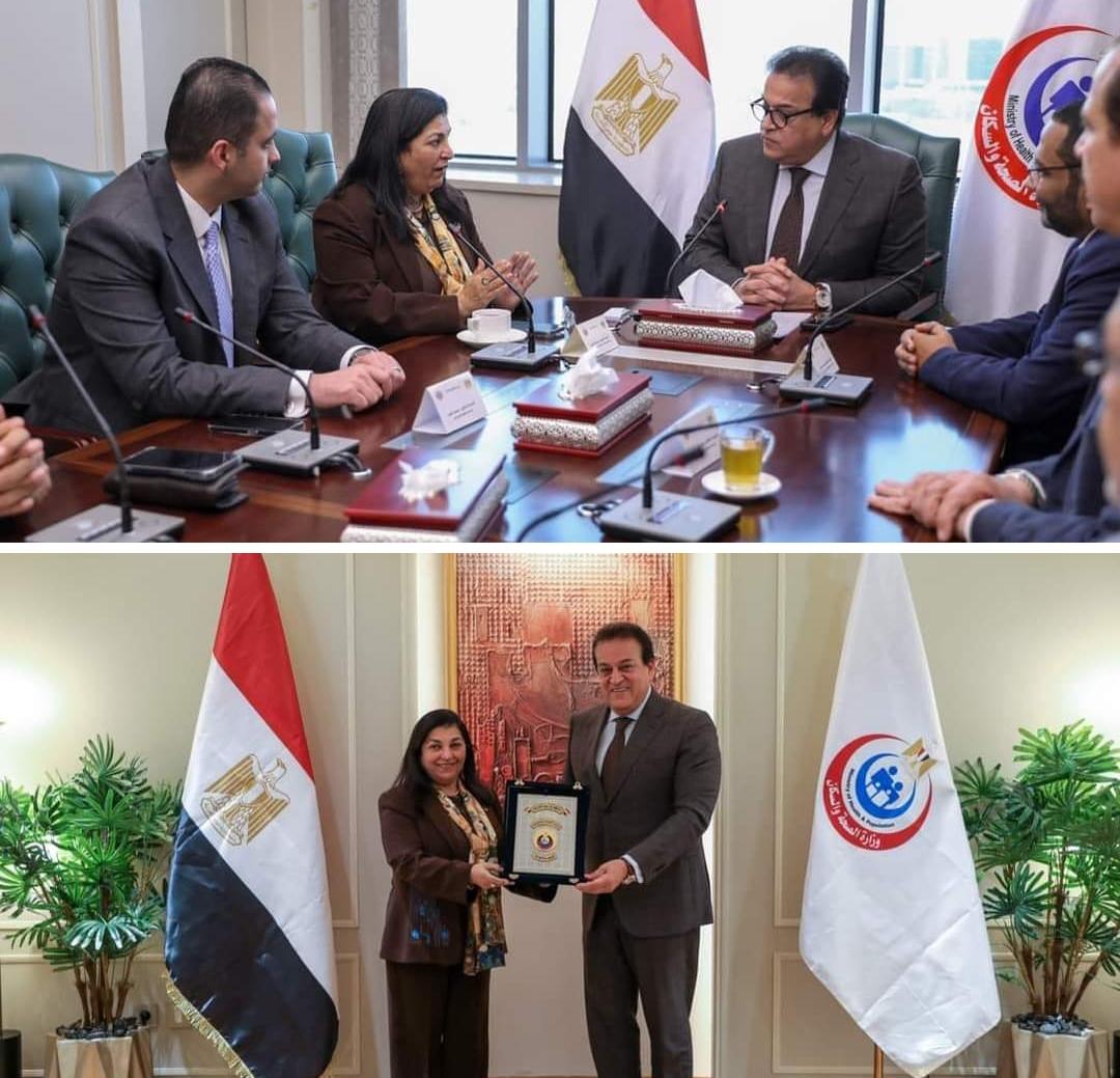 وقال "عبدالغفار" إن الوزير قام بإهداء الدكتورة نعيمة القصير، درع الوزارة تقديرا لها على جهودها التي بذلتها مع وزارة الصحة والسكان في تقديم أفضل خدمة طبية للمواطنين في إطار منظومة صحية متكاملة تعمل وفقا للمعايير العالمية.