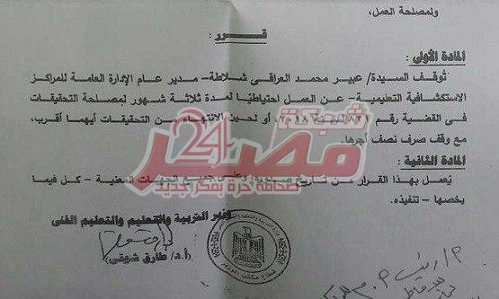 إيقاف عبير محمد العراقى مديرة المراكز الاستكشافية...
