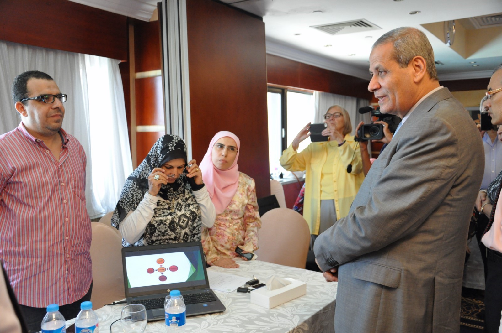 بدأ الوزير زيارته بتفقد ورشة عمل "إعداد معايير مواد العلوم والرياضات والتكنولوجيا" الخاصة بمدارس المتفوقين للعلوم والتكنولوجيا.