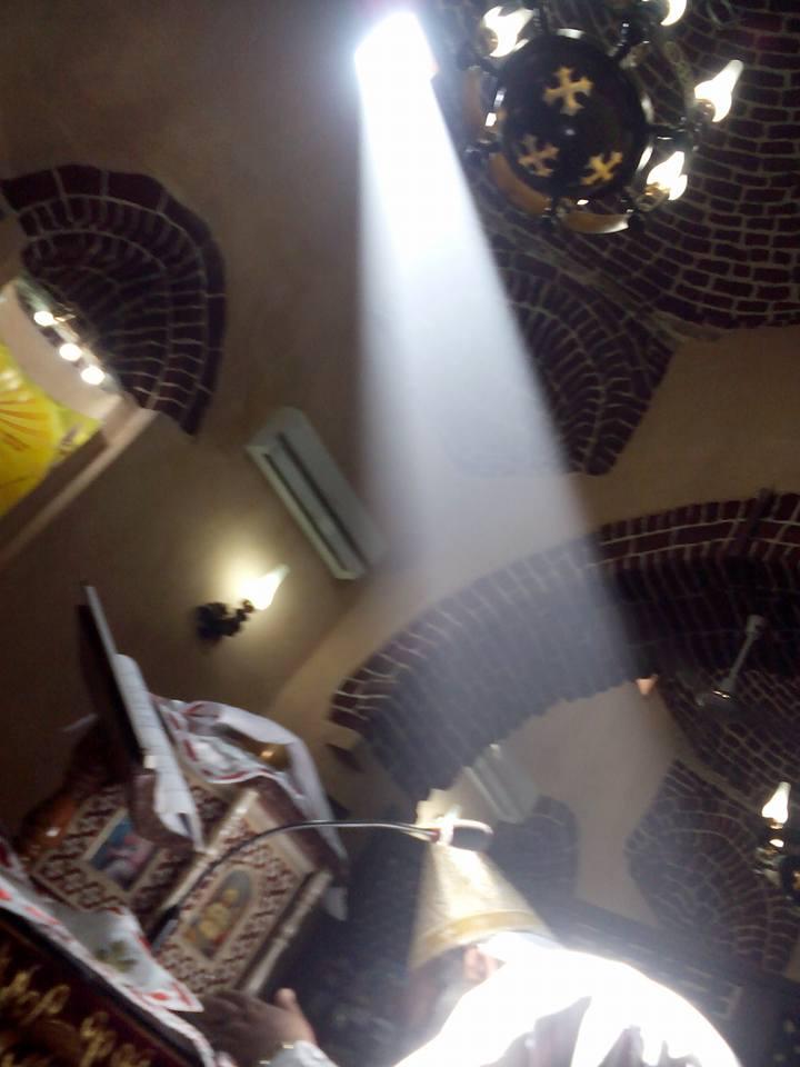 ويقول المهندس وديع وليم احد اعضاء فريق الترميم بالكنيسة عندما تمر الصدفة على جاهل تمر مرور الكرام ولكن عندما مرت علينا كمختصين توقفنا عندها فقد تلاحظ لقدس ابونا ويصا كاهن الكنيسة اثنا عمل قداس فى عيد الملاك قبل عام 2014 سقوط شعاع خفيف جدا من ثقب فى قطعة الخشب والتى كانت غالقة لشباك المذبح وعندما بحثنا عن من اغلق هذة الشبابيك ومتى اغلقت لم نعرف اجابة لان ذلك حدث منذ سنوات عديدة لانعرف متى بالظبط ولا عددها فقمنا بنزع هذة القطع الخشبية وانتظرنا لنرصد مايحدث فى عيد الملاك 2014 وكانت المفاجاة التى نحن بصددها الان ونحتفل بها للعام السادس على التوالى والتى توكد على عظمة الفنان القبطى القديم وكيف ورث من ابائة واجدادة الفراعنة علم الفلك فاليوم ومع تقدم علم الفلك والرياضيات يمكن حساب درجات ميل الشعاع وحساب مستوى التعامد وزوايا واتجاهات الشعاع اما قديما كيف تثنى لهم معرفة ذلك وهم لايمتلكون الاجهزة والمعدات انة اعجاز هندسى فريد وليس دينى نعم هم احفاد الفراعنة اصحاب الحضارة والعلوم فعندما نحتفل بعيد الملاك او عيد القديس مارجرجس او عيد القديسة العذراء مريم نجد السماء تنزل اليهم بحزمة كبيرة من الضوء على مذابحهم وكأنه شمعة كبيرة احتفالا باعيادهم