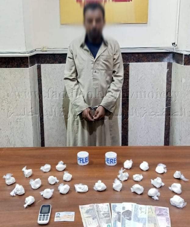 ضبط (عاطل – مقيم بدائرة قسم شرطة برج العرب بالإسكندرية – سبق إتهامه فى قضية "مخدرات") لقيامه بالإتجار فى المواد المخدرة ، حال تواجده بدائرة قسم شرطة أول العامرية بالإسكندرية.. وبحوزته (عدد 2 إسطوانة لمخدر الهيروين وكذا كمية من ذات المخدر وزنت جميعها 1,100 كيلو جرام - مبلغ مالى - هاتف محمول).. وبمواجهته إعترف بحيازته للمواد المخدرة بقصد الإتجار ، والمبلغ المالى من حصيلة البيع ، والهاتف المحمول للإتصال بعملائه.
