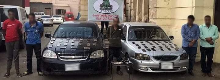 ضبط (عدد 5 عاطلين – لإثنين منهم معلومات جنائية مسجلة – مقيمين بالإسماعيلية والشرقية) لقيامهم بالإتجار فى المواد المخدرة، وذلك فى كمين أعد لضبطهم بدائرة مركز شرطة السنبلاوين بمحافظة الدقهلية حال إستقلالهم (عدد 2 سيارة ملاكى).. وبحوزتهم (عدد 50 طربة لمخدر الحشيش وزنت 5 كيلو جرام - مبلغ مالى - عدد 7 هواتف محمولة).. وبمواجهتهم إعترفوا بحيازتهم للمواد المخدرة بقصد الإتجار، والمبلغ المالى من حصيلة البيع، والهواتف المحمولة للإتصال بعملائهم، وإستخدام السيارتين فى عملية النقل والترويج.