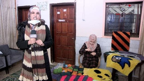 ألتقت الإعلامية الفلسطينية فاطمة جبر العطاونة مراسلة قناة النعيم الفضائية مع مرام الحاج أحمد طالبة تدرس طب أسنان فى غزة المحاصرة وتجد بدائل لمسار حياتها لتتقن مهنة السجاد اليدوي كى يساعدها في تكاليف دراستها حقاً إنه فن البسطاء