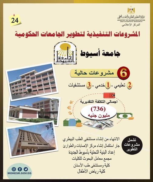 وأوضح التقرير أن التكلفة الإجمالية للمشروعات الجاري تنفيذها في جامعة أسيوط تبلغ نحو 736 مليون جنيه.