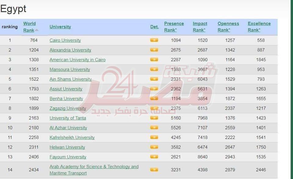 جامعة القاهرة تحتل صدارة الجامعات المصرية في...