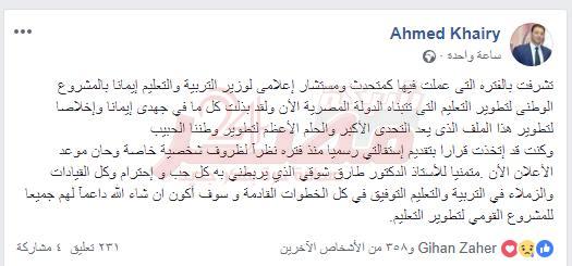 عاجل.. استقالة المتحدث الإعلامي لوزارة التربية...