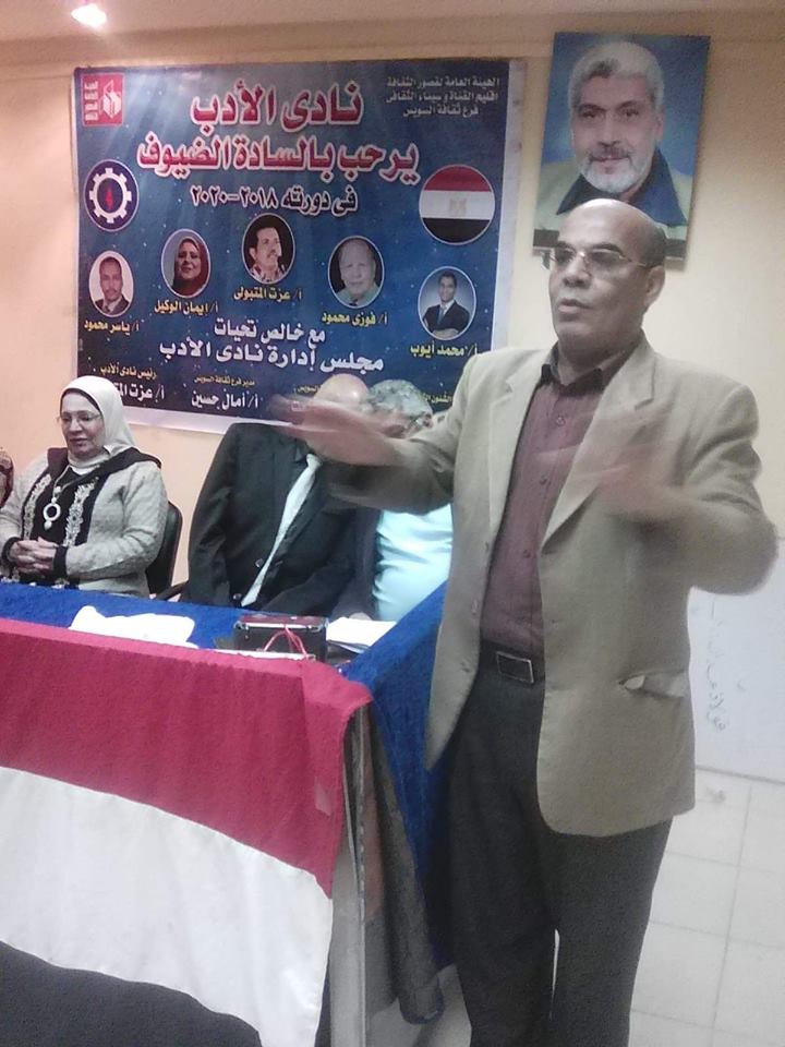 ناقش اليوم نادى الأدب بثقافة السويس برئاسة الشاعر عزت المتبولي وعضوية الشعراء محمد ايوب وفوزى محمود وايمان الوكيل وياسر محمود أعمال الشاعر وحيد عبد الله وناقشة الأمسية أستاذة دكتورة عزيزة الصيفى وتناولت فيها أبدعات من الشعر القديم والمعاصر لأسراء الثقافة الأدبية والفنية والوطنية والمجتمعية فى حياة الأمم والشعوب ودور الثقافة والأدب والشعر فى تقدم الأمم والشعوب.