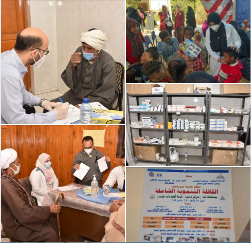 بدأت منذ الصباح الباكر قافلة جامعة عين شمس التنموية الشاملة أعمالها لخدمة أهالي مركز أبو دياب غرب بمركز دشنا بمحافظة قنا ، وذلك تحت رعاية أ.د. محمود المتيني رئيس جامعة عين شمس و السيد اللواء طيار أ.ح .أشرف غريب الداودي محافظ قنا .وينظمها قطاع شؤون خدمة المجتمع وتنمية البيئة برئاسة أ.د. هشام تمراز نائب رئيس الجامعة لشؤون القطاع و إشراف عام أ.د. شهيرة سمير وكيل كلية الطب لشئون خدمة المجتمع وتنمية البيئة و إشراف أ. سهيل حمزة أمين الجامعة المساعد لشئون القطاع .