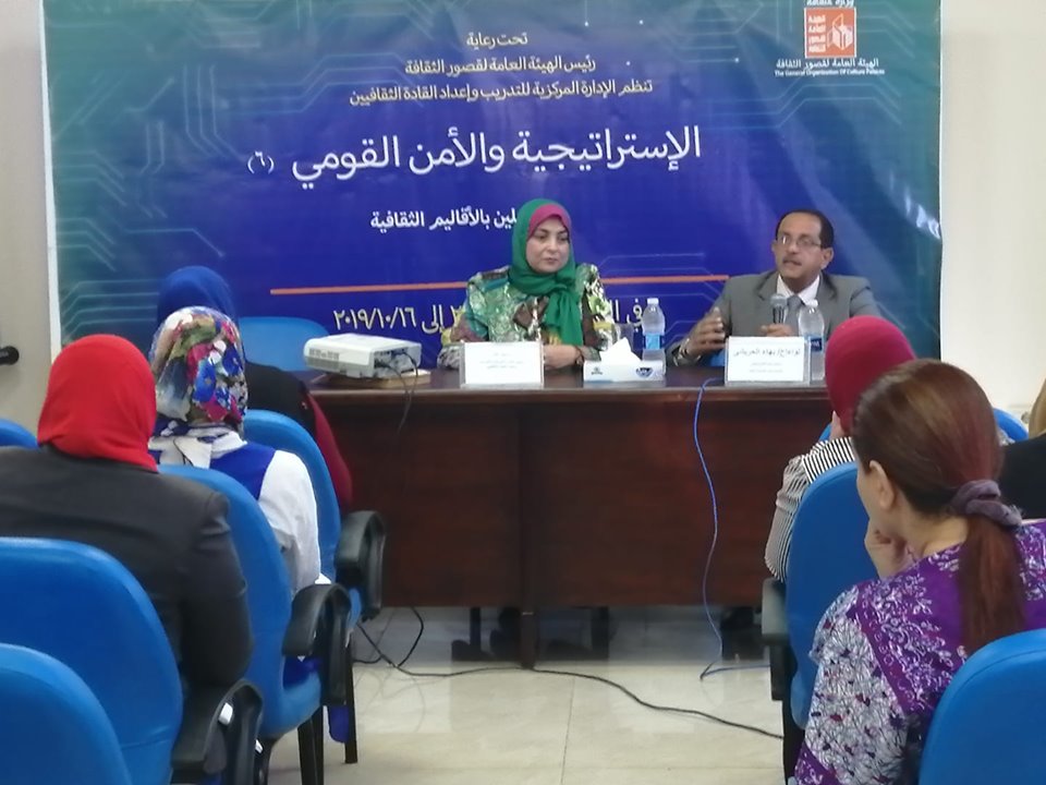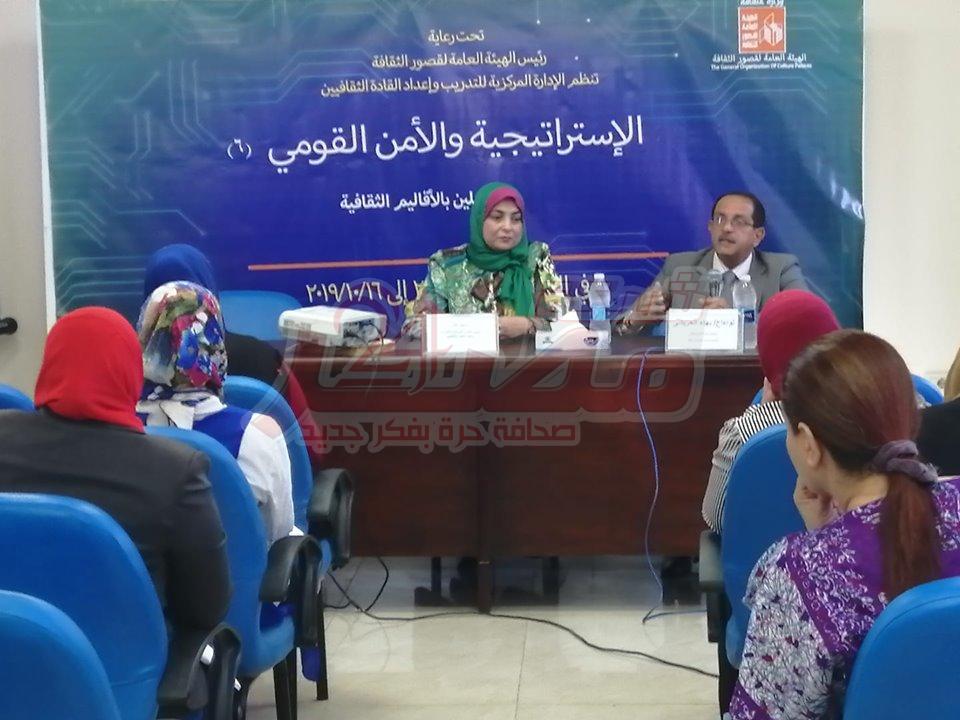 أطلقت الإدارة المركزية للتدريب وإعداد القادة الثقافيين بالتعاون مع أكاديمية ناصر العسكرية، فعاليات الدورة السادسة لـ"استراتيجية والأمن القومي وبمشاركة 40 من مديري الإدارات العامة ومديري الإدارات الوسطى بالأقاليم الثقافية المختلفة التابعة للهيئة العامة لقصور الثقافة ، خلال الفترة من 12 إلى 16 اكتوبر الجاري، بمقر مكتبة البحر الأعظم التابعة لإقليم القاهرة الكبرى وشمال الصعيد الثقافي بالجيزة. حضرت الافتتاح رئيس المركزية للتدريب موضحة أن البرنامج يقدمه نخبة متميزة من الأساتذة والمتخصصين في مجال الاستراتيجية والأمن القومي المصري والعربي، وستتضمن موضوعات التدريب أهم قضايا وملفات الأمن القومي المصري والعربي، ومنها دور القوات المسلحة في التنمية الشاملة ،والتخطيط الاستراتيجي القومي وعلاقته بإدارة الأزمات، ثورات الربيع العربي، التحديات والتهديدات التي تواجه الأمن القومي المصري، والصهيونية وقيام دولة إسرائيل.كما تضم موضوعات التدريب التطور التاريخي لمنظمات المجتمع المدني، المخططات الغربية لتقسيم الشرق الأوسط، دور حلف شمال الأطلنطي في الشرق الأوسط، الأساليب المستخدمة في حروب الجيل الرابع، الخلفية التاريخية والقانونية لمثلث حلايب وشلاتين، حقوق مصر التاريخية في مياه النيل، وشبكات التواصل الاجتماعي ما لها وما عليها بالنسبة للأمن القومي المصري.يأتي ذلك في إطار حرص المركزية للتدريب على التوعية السياسية والاقتصادية العاملين بالصرح الثقافي ضد المخاطر والتحديات التي تهدد الأمني القومي المصري والعربي، وحمايتهم من الإرهاب والتطرف الفكري. يجدر الاشارة الي أن أولى محاضرات البرنامج كانت حول مفاهيم وأبعاد الامن القومي للواء أركان حرب بهاء الحريشي ثم تلاه اللواء أركان حرب ناجي شهود متناولا حرب اكتوبر ومؤكداً على ضرورة إتاحة الفرصة للشباب لأنهم المستقبل القادم لمصرفكل جيل يترك أثره في الجيل الذي يليه ويكمل ما بدأه السابقون ويجني ثمار ما صنعوه، مناشدا الشباب أن يحكموا عقولهم قبل اتخاذ أي قرار تجاه بلدهم، وإعادة الثقة بين الشعب ومؤسساته من جيش وشرطة، وخلق تلاحم بينهم، كذلك إعادة الثقة للجندي في نفسه وقادته وسلاحه وغرس مفاتيح الإيمان بعدالة القضية التي يضحي بروحه من أجلها