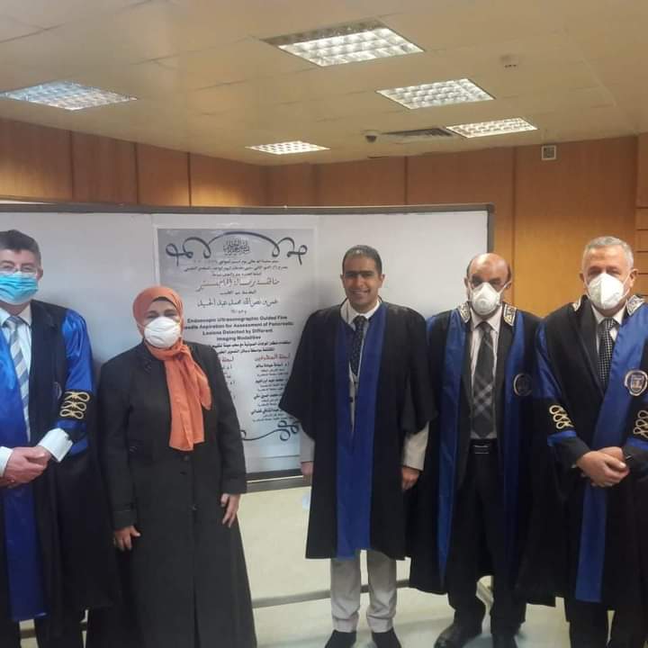 وفى الرسالة التى استغرق إعدادها أربعة أعوام وأشرف عليها لفيف من أساتذة أمراض الجهاز الهضمي في الإسكندرية وعلي رأسهم أ. د. أسامة عبادة سالم أستاذ الباطنة العامة والجهاز الهضمى والمناظير بجامعة الإسكندرية و أ. د. وفاء محمد حسين أستاذ الباطنة العامة والجهاز الهضمى و المناظير بجامعة الإسكندرية و أ. د. محمد عيد إبراهيم أستاذ الأشعة التشخيصية بكلية الطب جامعة الإسكندرية و أ. د. جيلان عبد الشافي فضالي أستاذ علم الأمراض بمعهد البحوث جامعة الأسكندرية ، وتمت مناقشتها من قبل السادة أ. د. أسامة عبادة سالم أستاذ الباطنة العامة و أ.د. محمد توفيق الرويني أستاذ الجراحة العامة و جراحة الجهاز الهضمي بكلية الطب جامعة الإسكندرية و أ. د. جاسر إبراهيم العزب أستاذ الباطنة العامة بمعهد الكبد القومى . تم إثبات القدرات الفعالة والدقيقة لمنظار الموجات الصوتية فى تقييم وعلاج آفات البنكرياس المكتشفة بواسطة وسائل التصوير الطبي المختلفة .