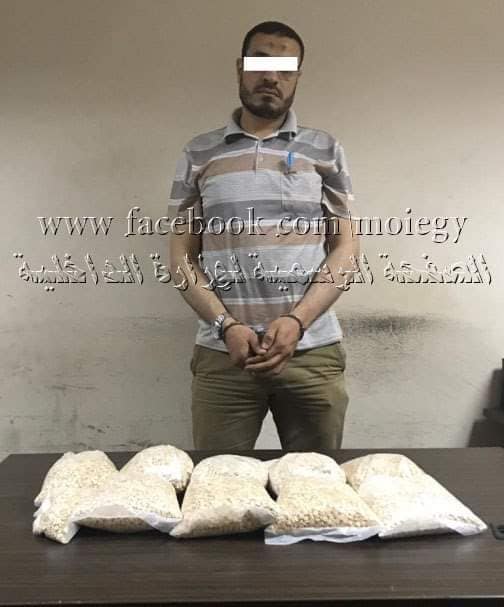 عقب تقنين الإجراءات تم تشكيل لجنة أمنيه جمركية لتفتيش المذكور وأمتعته أسفرت أعمالها عن ضبط (عدد 46,400 قرص لعقار الكبتا جون المخدر بإجمالى وزن 8 كيلو جرام ) تم إخفائهم داخل عدد 4 كيس ورقى كبير الحجم بحقيبة ضمن أمتعته . بمواجهته أقر بصحة الواقعة وحيازته للمضبوطات بقصد التهريب والإتجار بالإشتراك مع آخرَيْن مُحددَيْن.
