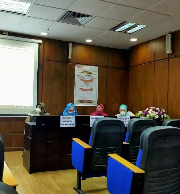 ضمت لجنة المناقشة الدكتورة سميرة عزت و الدكتورة وكيل المعهد لشئون خدمة المجتمع والدكتورة ليلى درغام والدكتورة وسام مراد والدكتورة صفاء بدر
