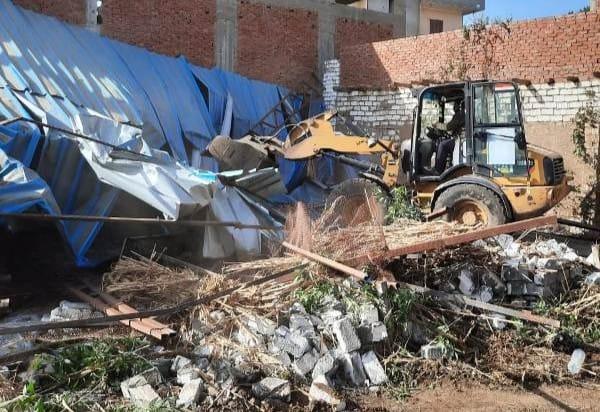 وإستمرارا لتنفيذ الإزالات فى المهد ، قامت الوحدة المحلية لمركز ومدينة الشهداء بتنفيذ إزالة فورية عبارة عن تعدى ببناء سورعلى الأراضي الزراعية بساحل الجوابر بمساحة 720 متر وتم تنفيذ الإزالة بمعرفة المواطن ، وتم اتخاذ الإجراءات القانونية تجاه المتعدين وذلك من أجل الحفاظ علي الرقعة الزراعية .