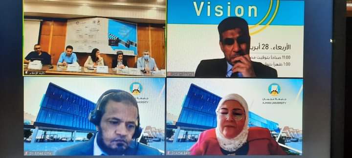 وكانت د. هويدا مصطفى قد افتتحت فعاليات الملتقى الإليكتروني بتوجيه الشكر والترحيب بعميد كلية الإعلام جامعة عجمان د. حسام سلامة، وبمنسقي الملتقي الإليكتروني وهم د. بسنت مراد الأستاذ المساعد بكلية الإعلام جامعة القاهرة ومدير مركز التدريب بقسم الإذاعة والتليفزيون، ود. صفاء عثمان الأستاذ المشارك بكلية الإعلام جامعة عجمان ومنسق برنامج الإذاعة والتليفزيون، وكذلك بالمتحدثين المشاركين على المنصة وهم إبراهيم السيد، المخرج بالتليفزيون المصري، هاني سمير المخرج والمنتج للأفلام الوثائقية، وهيثم كرم، المونتير السينمائي.