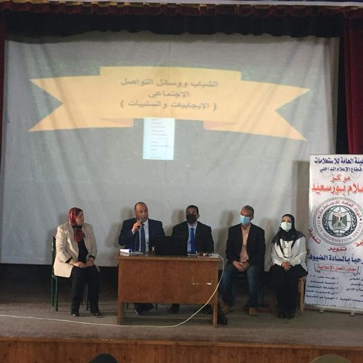 ثم اعقب ذلك كلمة للدكتور عبد العزيز حسين عن تأثير وسائل التواصل الاجتماعى على الشباب حيث تستهلك طاقاتهم و تؤثر على مستقبلهم و طبائعهم الشخصية حيث جعلت وسائل التواصل الاجتماعي الليل نهار و النهار ليل و أثرت بشكل سلبي على الصحة العامة و النفسية و العلاقات الاجتماعية و الأسرية .