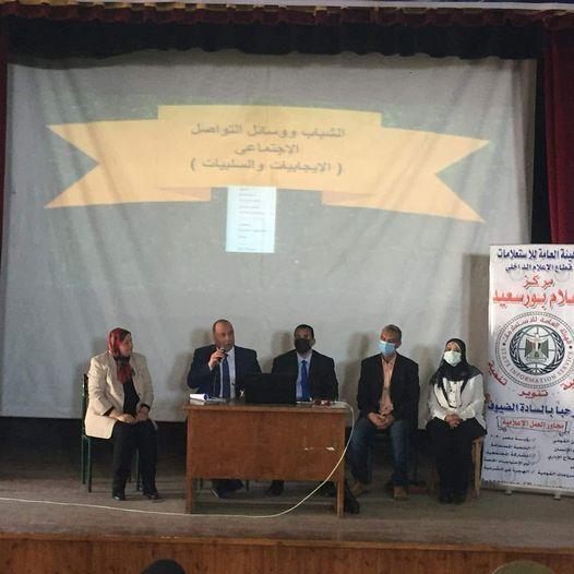 لاشك أن وسائل التواصل الاجتماعي تؤثر بشكل كبير على ثقافة المجتمع ونظرته الشاملة للعالم، كما أنها تسمح بطرح القضايا المجتمعية للمناقشة و الحوار حيث تتباين تأثيرات هذه الوسائل على المجتمعات ما بين سلبية وإيجابية ، ومن هذا المنطلق عقد مركز إعلام بورسعيد التابع للهيئة العامة للاستعلامات بالتعاون مع مركز خدمة المجتمع وتنمية البيئة بالمعهد العالى للخدمة الاجتماعية ندوة موسعة لطلاب المعهد تحت عنوان " الشباب ووسائل التواصل الاجتماعى .. الايجابيات والسلبيات " بحضور الأستاذ الدكتور مهدى القصاص عميد المعهد و الدكتور عبد العزيز حسين وكيل المعهد لشئون الطلاب و الأستاذ عصام صالح مدير مركز إعلام بورسعيد و الدكتورة منال عيد مدير مركز خدمة المجتمع و تنمية البيئة والأستاذة نيفين بصلة مسئول الاعلام التنموى بمركزإعلام بورسعيد و شارك فيها عدد كبير من السادة أعضاء هيئة التدريس و الطلاب .