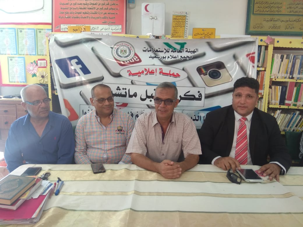 في إطار الحملة الإعلامية " فكر .. قبل ماتشير " التي ينفذها مجمع إعلام بورسعيد التابع للهيئة العامة للاستعلامات برئاسة الأستاذة مرفت الخولي بالتعاون مع الدكتور نبوي باهي وكيل وزارة التربية و التعليم ببورسعيد و إشراف ادارة العلاقات العامة بقيادة الأستاذ محمد ضياء تم عقد ندوة " خطورة الشائعات على الأمن القومي " بمدرسة بورسعيد التجارية بنات و التي استضاف فيها الدكتور سعد التابعي المذيع بالتليفزيون المصري و أدارها الاستاذ عصام صالح مسئول الاعلام التنموي بمجمع إعلام بورسعيد .