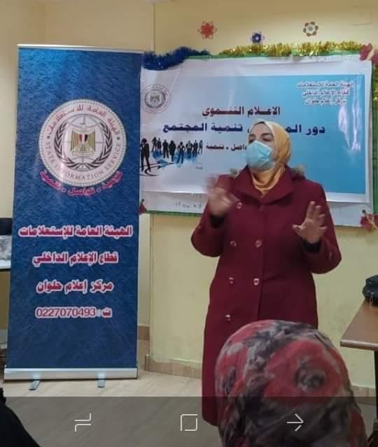 تماشيا مع استراتيجية الدولة للتنمية المستدامة 2030 واحتفالا بشهر المرآة نفذ مركز اعلام حلوان التابع للادارة العامة لاعلام القاهره قطاع الاعلام الداخلى بالهيئة العامة للاستعلامات اليوم الاربعاء 31/3/2021 بمقر جمعية (مصر الثقافة وتنمية المجتمع) بعين حلوان لقاء اعلامى بعنوان (دور المراة في تنمية المجتمع)