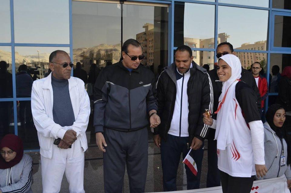 أطلق الدكتور أحمد عزيز رئيس جامعة سوهاج، صباح اليوم اشارة بدء "ماراثون" أسبوع الجامعات الأول بالحرم الجامعي الجديد ضمن فاعليات إسبوع الجامعات الاول الذي تنظمه الجامعة في الفترة من 8 الى 14 فبراير الجاري، بحضور الدكتور ابراهيم البرعى القائم بعمل عميد كلية التربية الرياضية ورئيس الإسبوع، والدكتور احمد عبدالله وكيل الكلية لشئون الطلاب والمشرف العام، والدكتور محمد عبد المحسن وكيل الكلية للدراسات العليا والمشرف على الفعاليات.
