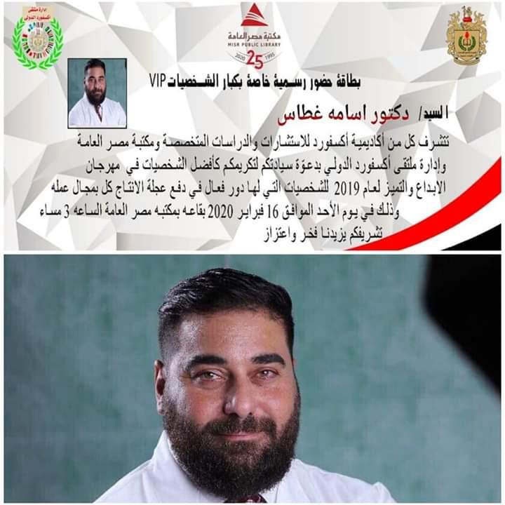 أقامت أكاديمية إكسفورد للإستشارات والدراسات المتخصصه حفلا هائلا بمكتبة مصر العامة لتكريم مجموعة من أفضل الشخصيات المؤثره في المجتمع أبرزهم طبيب أمراض الذكوره "أسامة غطاس" نظرا لما يقدمه من خدمات للمجتمع ومساعده الغير قادرين وسلمه شهاده التكريم اللواء د. "محمد شاهين" وكيل المخابرات العامة الأسبق وعضو بالمجلس المصري للشئون الخارجيه وقد سلمه وسام التميز والإبداع د. "عمرو سراج" رئيس مجلس إدارة مؤسسة "تحيا مصر" ورئيس أكاديمية إكسفورد للإستشارات والدراسات المتخصصة.
