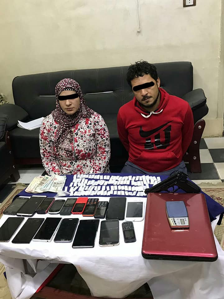¤ " ر . م . ذ " 32 سنة ربة منزل وبحوزتهما 150 جرام لمخدر الهيروين بقصد الإتجار + 735جنيه + 7 لاب توب + 16 هاتف ( مقيمان منشأة عباس مركز سيدي سالم وقد تحرر المحضر 12861/ 2019جنايات مركز سيدي سالم.