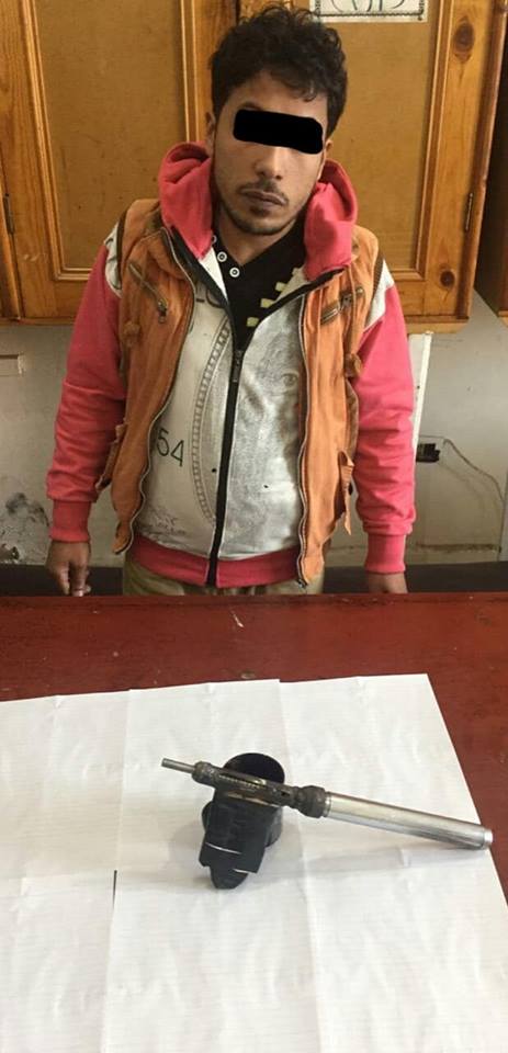 ¤ " ج . م . أ " 25 سنة عاطل وبحوزته طبنجة معدلة عيار 9 مم بقصد الدفاع + هاتف.