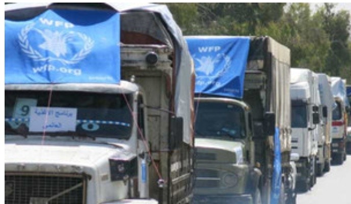 قافلة إمدادات برنامج الأغذية العالمي تعبر الحدود في شمال شرق سوريا.