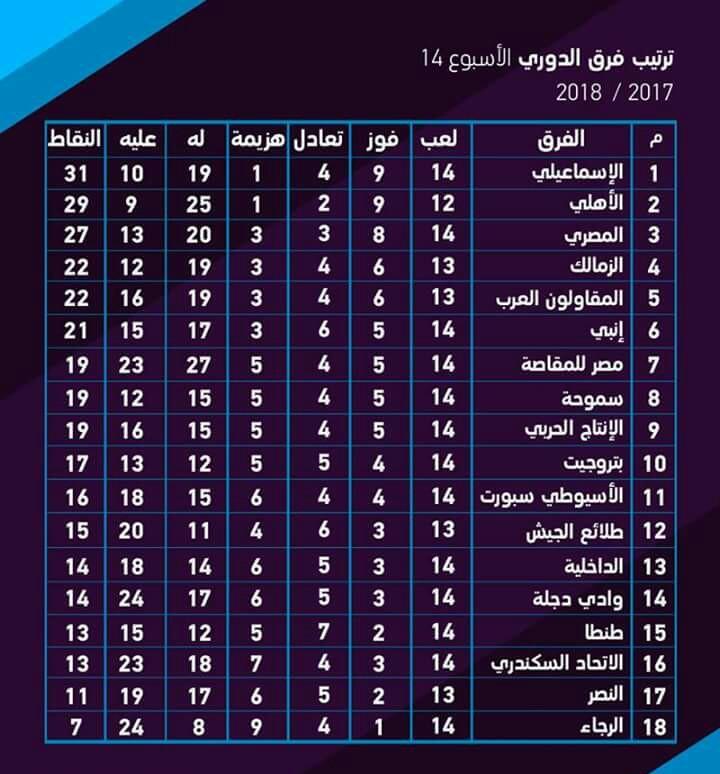 مباريات الأسبوع الرابع عشر من مسابقة الدورى العام لكرة القدم