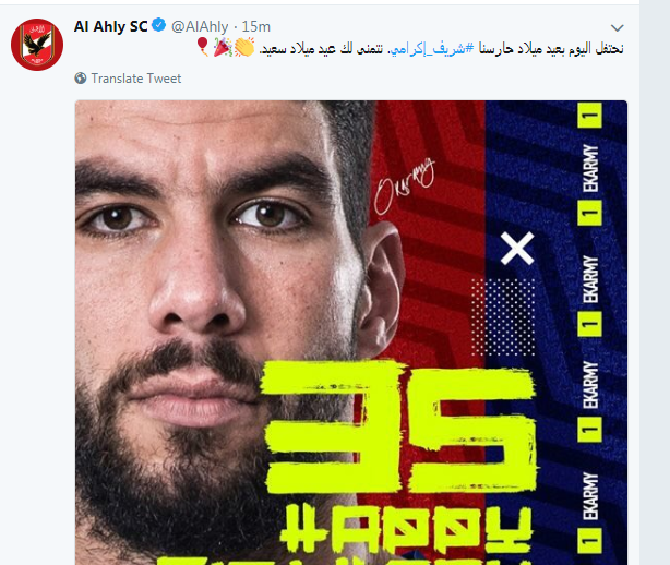 ( نحتفل اليوم بعيد ميلاد حارسنا شريف إكرامى .. نتمنى لك عيد ميلاد سعيد )