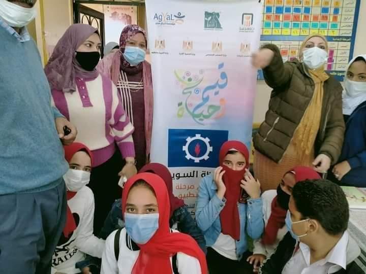 3) مجموعة_ورش_تعليمية لطلاب المدرسة حاضر بها عدد من المدربين التابعين لمشروع قيم وحياه التابع لمؤسسة أجيال مصر ومؤسسة مصر الخير ..