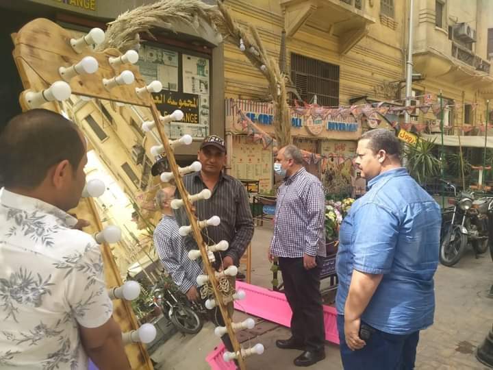برفقته فريق المتابعة الميدانية وادارة الاشغالات وفرع هيئة النظافة بالحى بعمل حملة لرفع وازالة الاشغالات شملت منطقة التطوير بالالفى وشارع نجيب الريحانى بنطاق الحى وإعادة المظهر الحضارى والبيئي اللائق لشوارع ومناطق الحى لتسيير الحركة المرورية .