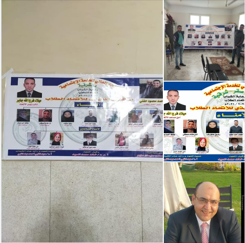 وتعليق بنرات بتشكيل المجلس التنفيذي لاتحاد الطلاب داخل المعهد وذلك لمعرفتهم من قبل طلاب المعهد وتسهيل التواصل معهم
