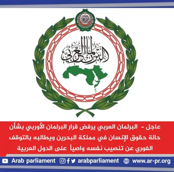 يؤكد البرلمان العربي رفضه القاطع واستنكاره الشديد للقرار الباطل الذي أصدره البرلمان الأوروبي بشأن حالة حقوق الإنسان في مملكة البحرين، ويشدد على أنه يمثل تدخلاً سافراً وغير مقبول في الشؤون الداخلية لمملكة البحرين، ويطالبه بالتوقف الفوري عن تنصيب نفسه واصياً على حالة حقوق الإنسان في الدول العربية.