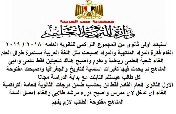- لا يوجد علمى رياضة او علمى علوم وسيكون هناك شعبتين علمى وادبى فقط
