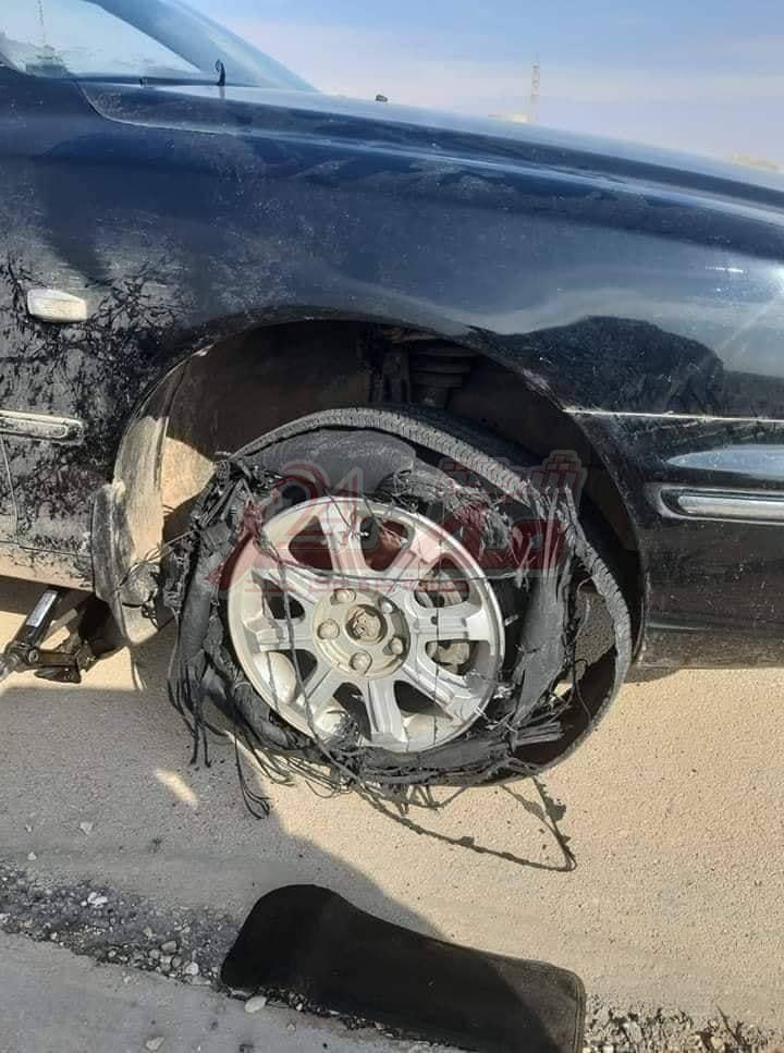 عند إنفجار أحد الإطارات حاول أن تبقى هادئاً قدر الإمكان وقم بتثبيت( المقود.الدركسون ) بكلتا يديك بقوة .