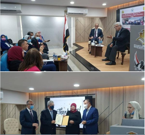 وأكد د. محمود المتيني على أهمية تدويل البرامج التدريسية حيث أنها تساهم في رفع التصنيف العالمي للجامعات مشددا على أهمية إعداد كوادر تقود عملية التدويل بالجامعات المصرية وتحويل مخرجات البرنامج إلى خطة استراتيجية واضحة يستفاد منها في كل الجامعات المصرية.