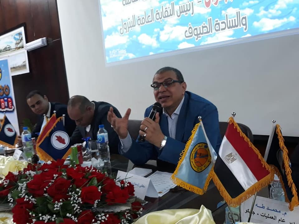 رسالة من العاملين بقطاع البترول إلى الرئيس عبد الفتاح السيسي من خلال مؤتمر مصر إمانة بين ايديك و الذى اقيم فى الاثنين الموافق الخامس والعشرون من شهر مارس لعام الفين وتسعة عشر فى شركة بترول خليج السويس، بحضور اللواء ياسر شعبان رئيس مدينه راس غارب، ومدير عمليات جابكو المهندس محمد طه وأحمد السروجى الامين العام للنقابة العامة للبترول وسعيد حافظ ويوسف داود، وفواز عبدالحليم نواب رئيس النقابة العامة للعاملين بالبترول وعايدة محي الدين نائب رئيس النقابة العامة لشؤون المرأة ورزق بدرى امين الصندوق بالنقابة العامة ومحمود فرج مساعد امين الصندوق وهيثم زاد رئيس المركز الاعلامى للنقابه و اشرف المحروقي امين عام مساعد النقابه ، واحمد الجوهري امين الشباب و احمد ماتو نائب رئيس النقابة للسويس والبحر الأحمر، وعثمان العمده نائب عن منطقه الصعيد أسيوط وأحمد رمزى المدير الاداري للنقابة وبمشاركة ٥٥ من رؤساء اللجان النقابيه من السويس والقاهره والبحر الاحمر والاسكندرية