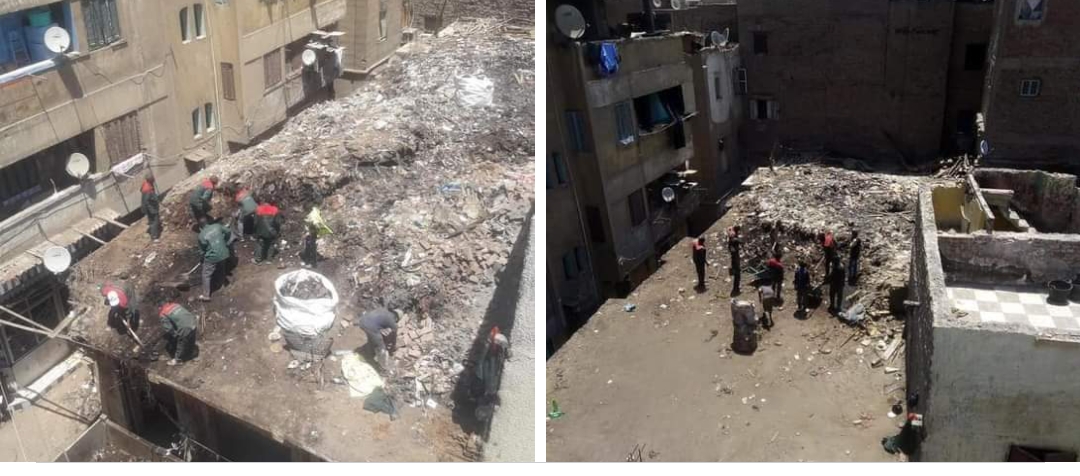 وأضاف وزير التنمية المحلية أنه تم الدفع بفرق ومعدات النظافة التابعة للهيئة وحى شمال الجيزة للبدء في رفع المخلفات ، وبدأت في رفع التراكمات المتراكمة على سطح المنزل المهجور حيث أكد الأهالى أنها موجودة منذ عقود وتزيد كل عام نظراً لقيام الجيران المحيطين بالأدوار العليا بإلقاء القمامة أعلى سطح العقار .