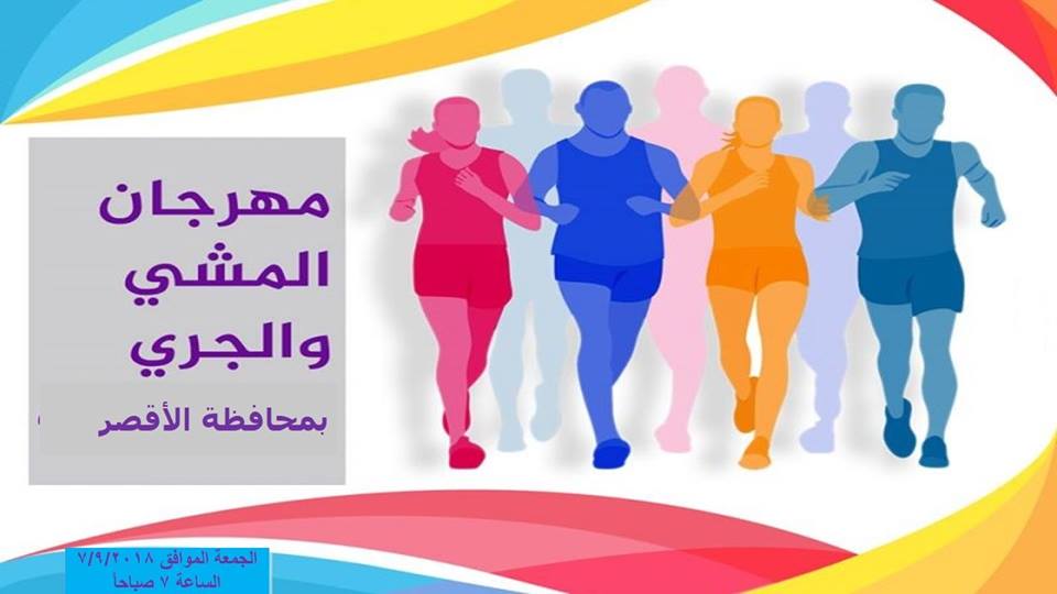 تنظم مديرية الشباب والرياضة تحت قيادة حفني بركات حفني مدير عام المديرية مهرجان مشى و جرى– وذلك يوم الجمعة الموافق 7/9/2018، تحت شعار "الرياضة أسلوب حياة" ، والذي ينظم بالتعاون مع وزارة الشباب والرياضة ( الإدارة المركزية للتنمية الرياضية ) تحت رعاية الدكتور أشرف صبحي وزير الشباب والرياضة . وذلك بهدف التشجيع على ممارسة الرياضة، وإعداد أجيال مهتمة بممارستها، ونشر الثقافة الرياضية والأخلاق الحميدة . وتقام فعاليات مهرجان الجري والمشي من أمام ساحة معبد الكرنك في تمام الساعة السابعة صباحاً يوم الجمعة 7/9/2018 وشروط المشاركة في مهرجان المشي والجري 1- المرحلة السنية من 15 إلى 25 سنة (بنين – بنات ) 2- الالتزام بالزي الرياضي 3- على من يرغب في الاشتراك في المهرجان التوجه إلى ساحة معبد الكرنك بالاقصر في تمام الساعة السابعة صباحاً يوم الجمعة 7/9/2018 بالزي الرياضي الكامل . وتحدد جوائز مالية للفائزين من المركز الأول حتى المراكز السادس ( بنين ) ومن المركز الأول حتى المركز السادس ( بنات ) ويتم تأهل الفائزين للتصفيات النهائية بالمدينة الشبابية بمدينة شرم الشيخ .