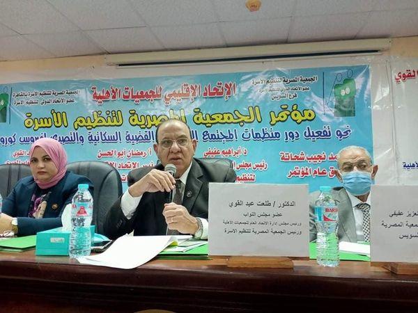نظمت الجمعية المصرية لتنظيم الأسرة مؤتمرا نحو تفعيل دور منظمات المجتمع المدنى فى القضية السكانية والتصدى لفيروس كورونا بالغرفة التجارية بالسويس يحاضر فيه الدكتور طلعت عبد القوى عضو مجلس النواب ورئيس مجلس إدارة الاتحاد العام للجمعيات الأهلية ورئيس الجمعية المصرية لتنظيم الأسرة بحضور النائبة عفاف زهران عضو مجلس النواب بالسويس عدد من الجمعيات الأهلية العاملة فى مجال القضية السكانية وإعلاميين وصحفيين بالسويس