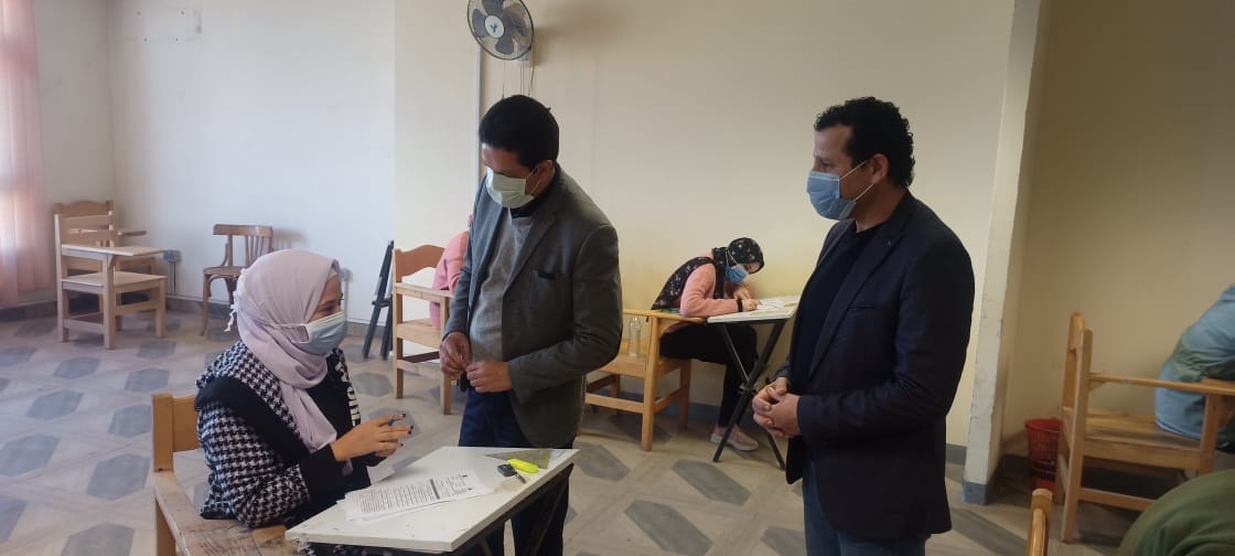 وقام " الجيزاوى " بجولة تفقدية داخل لجان الامتحانات فى أول أيام أسبوعها الثاني للاطمئنان على الالتزام بكافة الإجراءات الاحترازية والوقائية، واتخاذ التدابير اللازمة أثناء تأدية الامتحانات.
