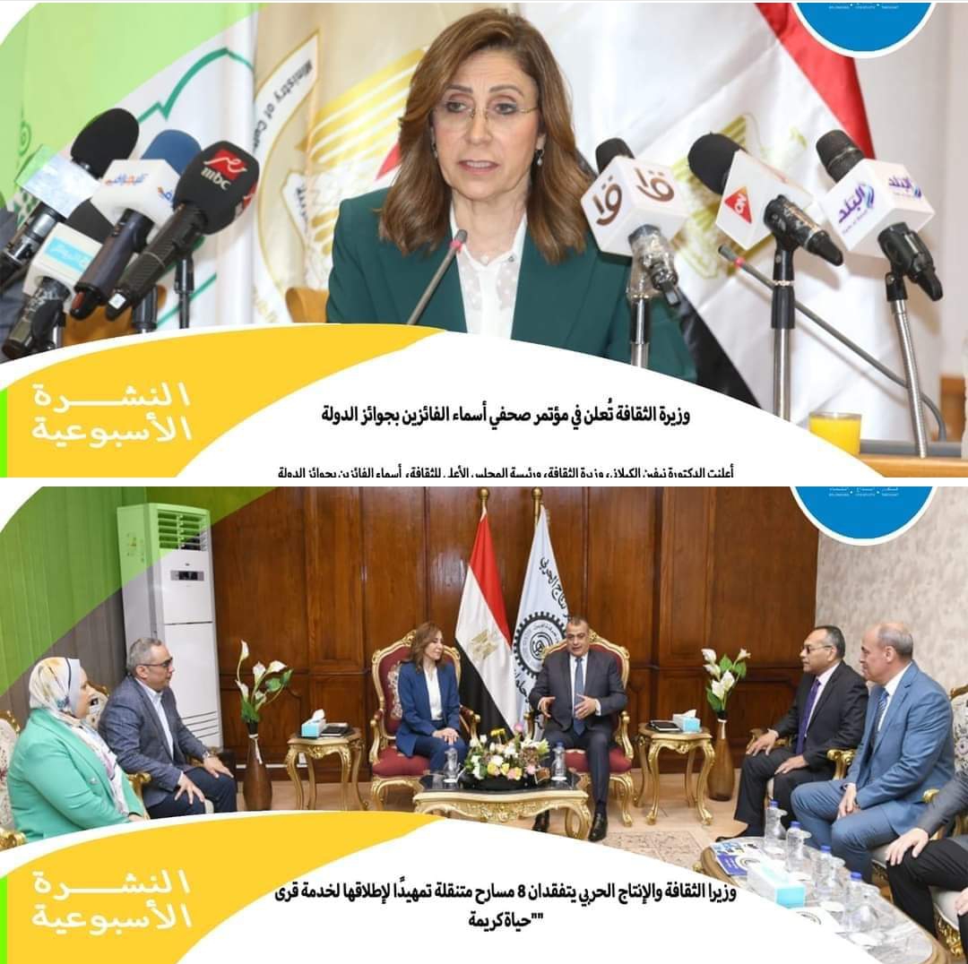 • وزيرة الثقافة تُعلن في مؤتمر صحفي أسماء الفائزين بجوائز الدولة