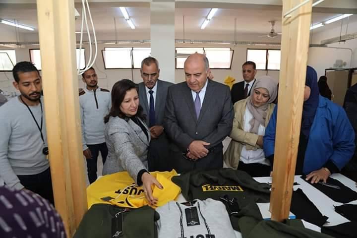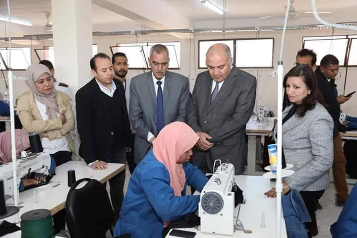 وتابع الداودى جولته بتفقد مشروع المجمع الصناعى للمرأة والشباب بمنطقة المعنا والذى يضم ورشتين لإنتاج الكليم والنحاس بتكلفة مالية وصلت إلى 3 ملايين و500 ألف جنيه ويوفر 65 فرصة عمل للفتيات كما يضم المجمع مصنع لإنتاج الملابس الجاهزة يضم 180 ماكينة خياطة وتطريز يعمل به 68 فتاه ويجرى تجهيز المرحلة الثانية من المصنع بالمعدات والماكينات اللازمة لتصل إجمالى الطاقة الإنتاجية للمصنع إلى 5 آلاف قطعة يومياً بتكلفة إجمالية للمرحلتين تصل إلى 20 مليون جنيه وسوف يوفر 430 فرصة عمل للفتيات .