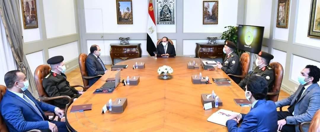 وصرح المتحدث باسم رئاسة الجمهورية بأن الاجتماع تناول "متابعة الموقف التنفيذي لمشروعات الهيئة الهندسية على مستوى الجمهورية".