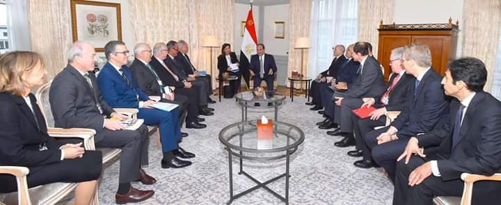 استقبل السيد الرئيس عبد الفتاح السيسي اليوم، بمقر إقامة سيادته ببرلين، وفداً من الاتحاد الفيدرالي الألماني للصناعات الأمنية والدفاعية، وذلك بحضور السيد امحمد العصار وزير الإنتاج الحربي، والفريق عبد المنعم التراس رئيس الهيئة العربية للتصنيع".