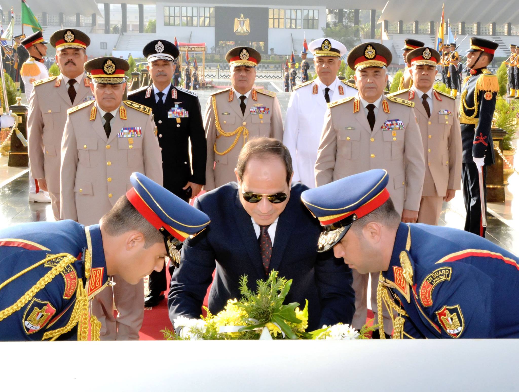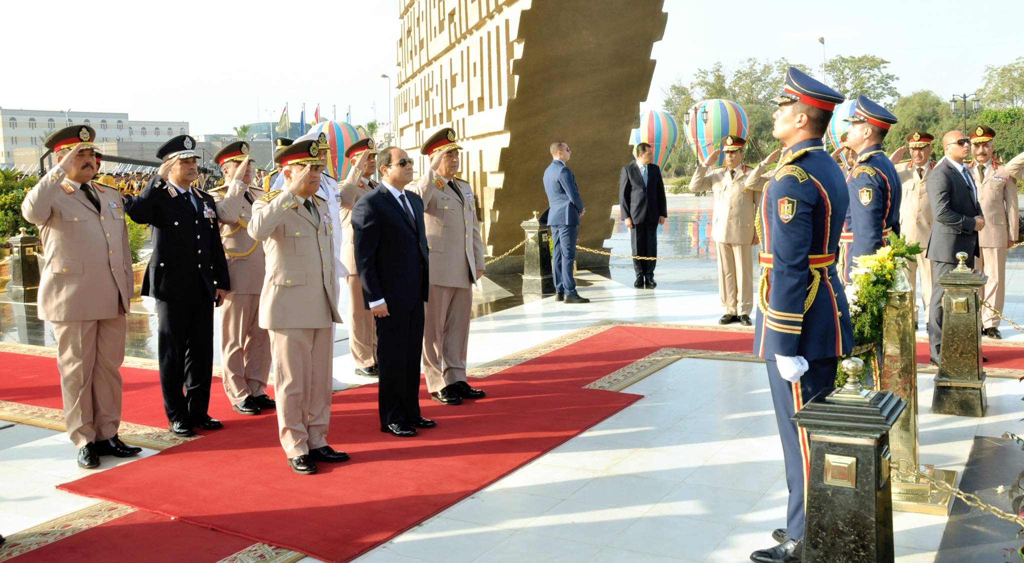 قام الرئيس عبدالفتاح السيسى رئيس الجمهورية القائد الأعلى للقوات المسلحة بوضع أكاليل الزهور على النصب التذكارى لشهداء القوات المسلحة بمدينة نصر ، وذلك مع بدء إحتفالات مصر والقوات المسلحة بالذكرى 44 لإنتصارات أكتوبر المجيدة .
